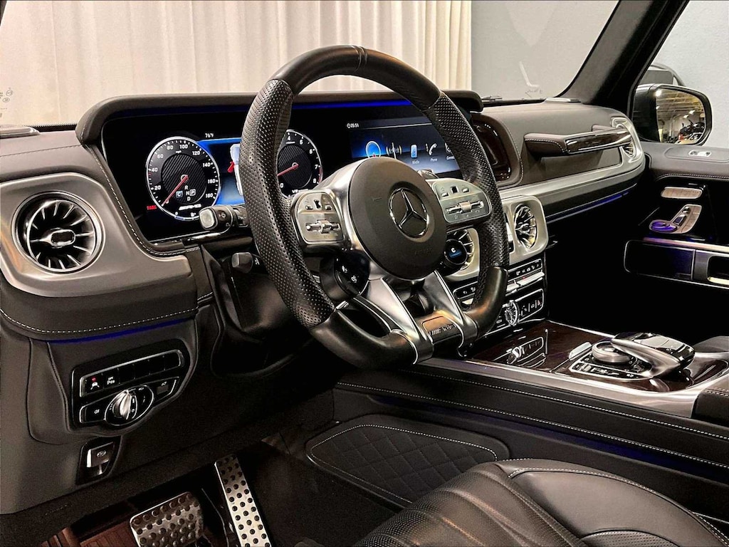 EXCLUSIVE INTERIOR PACKAGE PLUS: G manufaktur Interior Package Plus, upper door panels, kneepads plus inside of tailgate in exclusive Nappa leather w/diamond design, Upper & Lower Dashboard in Nappa Leather, G manufaktur Front Passenger Grab Handle Badge, Armrests in Exclusive Nappa Leather, Seat Comfort Package, Drive-Dynamic Multicontour Front Seats w/Massage, ENERGIZING Comfort Control, Rapid Heating Front Seats, Front Ventilated Seats, WHEELS: 22 AMG® CROSS-SPOKE FORGED Tires: 295/40R22, SPARE WHEEL COVER IN VEHICLE COLOR.